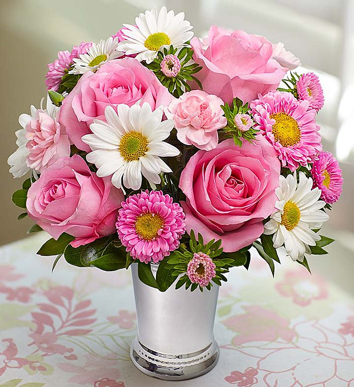 Here’s a charming little surprise to bring out the biggest smiles! This sweet mini bouquet of roses and daisies is handcrafted by our skilled florists inside a shimmering julep cup vase. A delightful gift in just the right size and with just the right mix of colors, it’s a wonderful way to express your feelings for special occasions or just because moments.