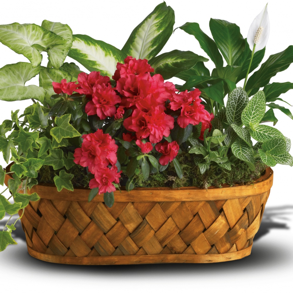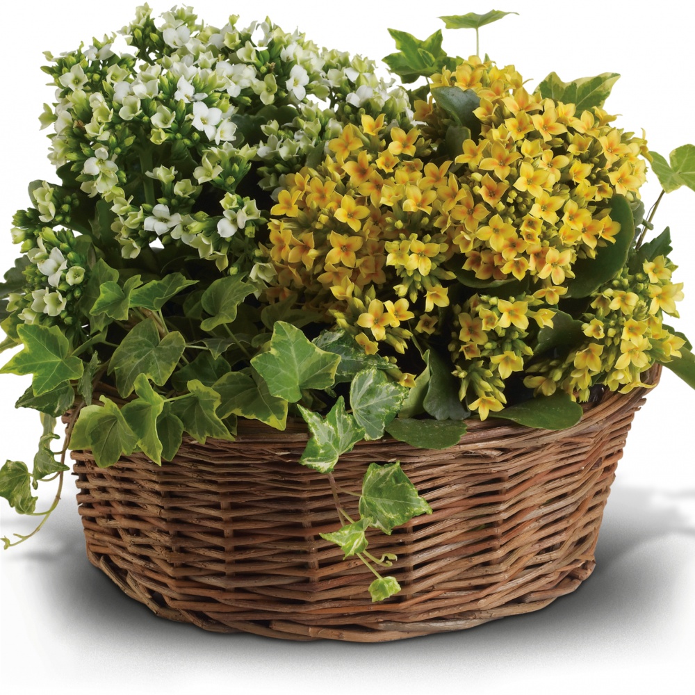 Now here’s a low-maintenance relationship everyone loves! Potted kalanchoe plants are flowering, tropical succulents that require very little attention – though you’d never guess it from their pretty appearance. Paired with an ivy plant in a natural gift basket for an extra special delivery!