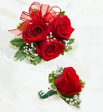 Crisp white Calla lilies, white roses and variegated pittosporum trimmed in white ribbon creates a look of memorable charm in this hand-crafted corsage arrangement. It makes an elegant accompaniment for the mother of the bride or groom, grandmothers, or treasured relatives.