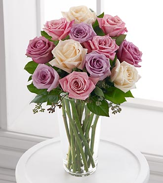 When you want your best wishes to arrive in high style, go with this fashionable, feminine bouquet! Full and fragrant, it gathers soft pink roses with white lilies, alstroemeria and mums into a rounded ginger vase.