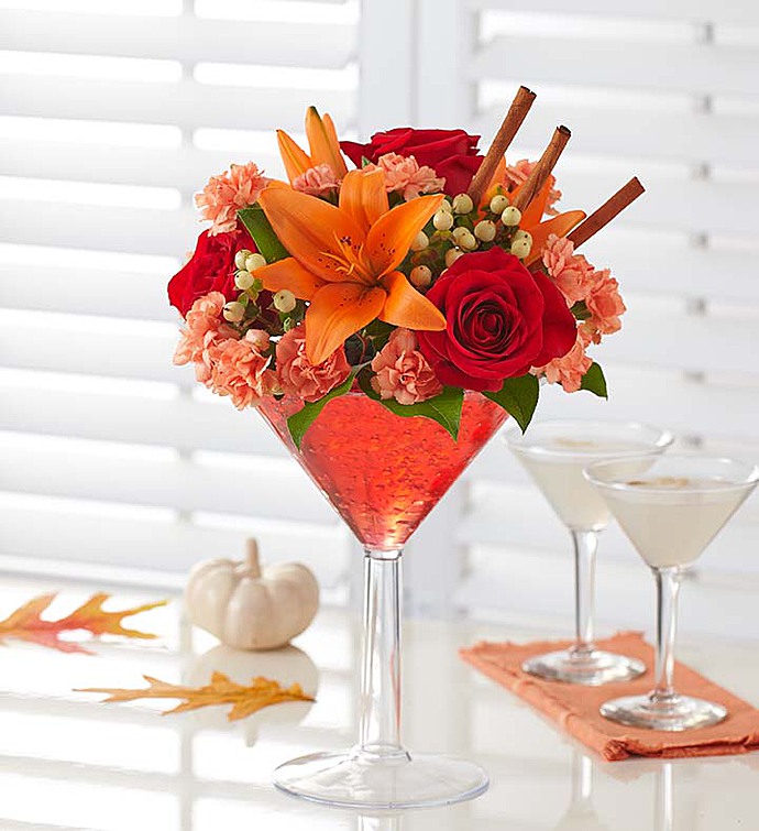 Our elegant arrangement perfectly captures the lively palette of colors you’ll find this time of year. Vibrant roses, sunflowers, poms and more are artistically arranged in a striking red glass vase accented with dried oak leaves. It’s the perfect gift to show your true colors by reminding all the special people in your life how much you care! Arrangement of roses, sunflowers, poms, hypericum, solidago and salal, accented with dried oak leaves Arrives in a red square glass gathering vase; measures 9″H Large arrangement measures approximately 18″H x 14″L Medium arrangement measures approximately 17″H x 13″L Small arrangement measures approximately 16″H x 12″L Our florists hand-design each arrangement, so colors, varieties and container may vary due to local availability