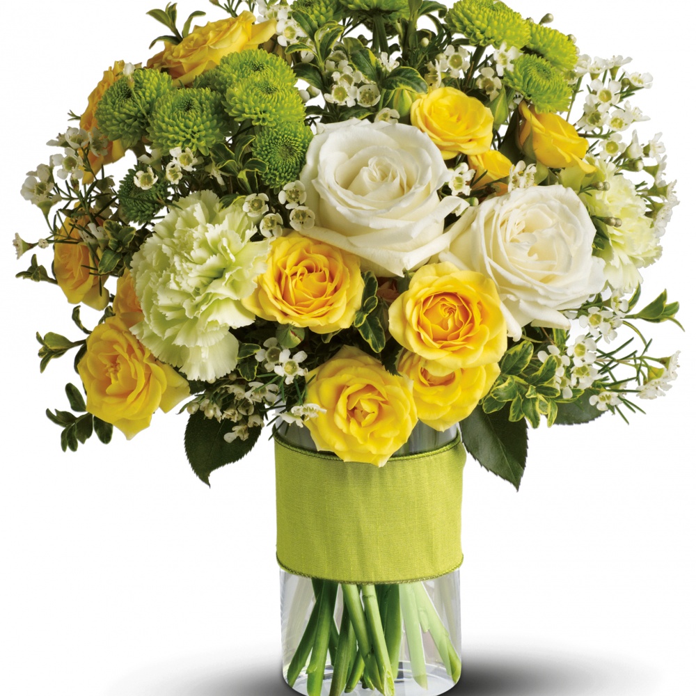 Stir up St. Patrick's Day smiles with our luckiest libation around! Inspired by the popular Irish cocktail, our florists hand-arrange the freshest green carnations, green roses, white poms and Bells of Ireland inside a keepsake oversized martini glass, accented with a festive shamrock ribbon. Sláinte!