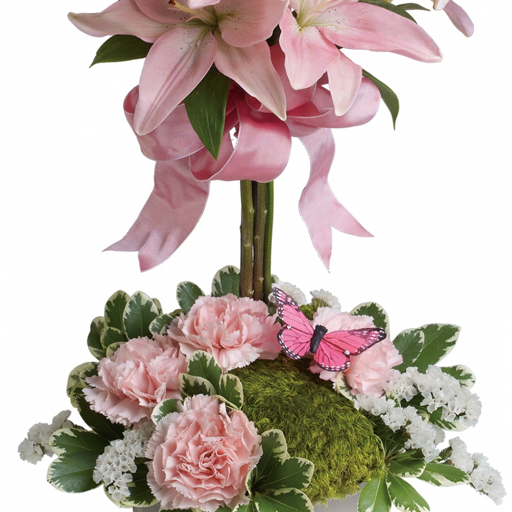 Heavenly hues and pretty petals are in perfect harmony in this gorgeous arrangement. Lovely for a birthday, anniversary or just because, it’s simply stunning!Light pink roses, white asiatic lilies, Queen Anne’s lace and salal are beautifully arranged in a glass vase. Heaven sent? Well, someone will think you’re an angel for sending it!