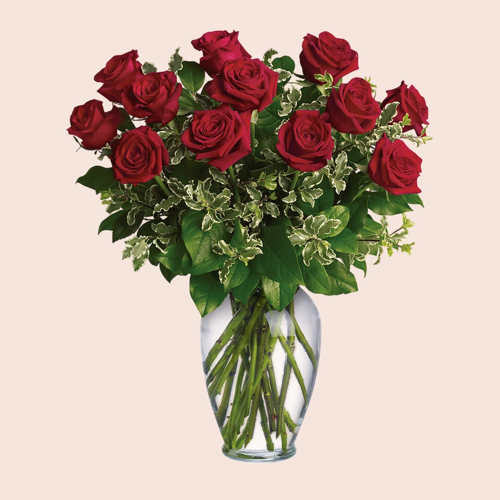 Give this beautiful bouquet, arranged in our lovely glass vase decorated with sweet rosy blooms and watch your love blossom!