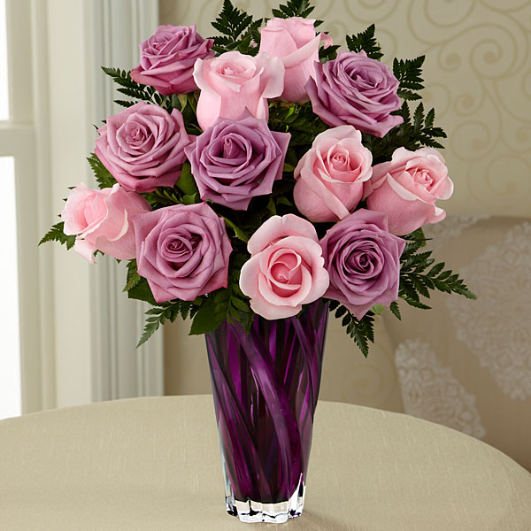 The Royal Treatment™ Rose Bouquet delivers your message of love in a whole new color palette thats becoming a most popular choice for Valentines Day… and with its companion – a sparkling treasure your love is bound to cherish forever – your gift will make their day. Our finest roses in shades of lavender and pink and accented with lush greens are arranged in an heirloom quality vase of heavy, amethyst cut glass. This uniquely elegant way to express whats in your heart on Valentines Day, Mothers Day, anniversaries, or for a special birthday celebration.